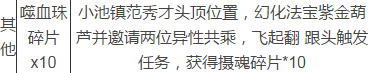2、传送到焚香谷玄火堂一层找到鬼厉接取任务,在一系列任务之后,获得噬血珠碎片x10、称号【宝宝有苦说不出】或【不撞南墙不回头】。