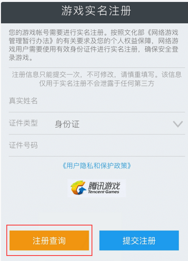 ① 点击注册查询按钮,选择相应QQ/微信帐号,查看自己的实名注册状态