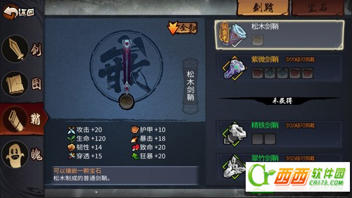 除了剑之外,还能够收集不同的剑鞘,这些剑鞘除了外形和属性的区别之外,还能够最多镶嵌5颗宝石,当然啦,玩家可以耗费少量的资源来重置剑鞘上宝石镶孔的数量和种类~