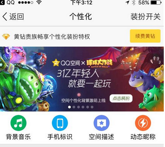 继推出淘宝个性化皮肤后,《球球大作战》再放大招,联手QQ空间,为3亿球宝们打造专属皮肤,让你即刻换装登场,向身边的好友们,秀出属于自己的爱好和个性。