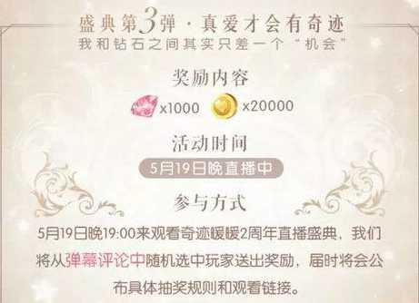 奇迹暖暖2周年直播5月19日的直播中,将会从弹幕评论中随机选中玩家送出奖励。