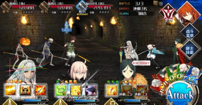 如果是3星的阵容,光炮留在这里放,先清掉小兵,小兵是会给你上降防DEBUFF的,尽管是职介克制,但是对面有特攻,加上降防,还是还疼的。唯一需要注意的就是,枪阶是4回合充能就释放宝具了