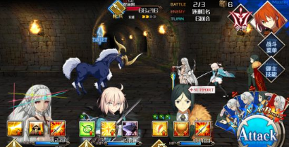 如果是金剑阵容,这里可以选择不放宝具,在这个马半血左右,孔明开buff,然后1-2回合带走这个怪