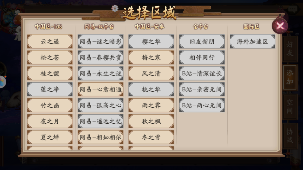 自己的好友是哪个区的就选哪个,不过,目前只开通了以下平台