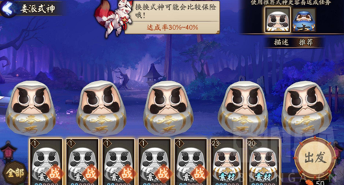推荐式神:惠比寿,座敷童子,招福达摩(红蛋);总数5