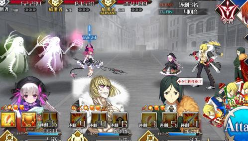 3个9000+的杂鱼,如果你确定金时第二波能放出来宝具,直接一回合清掉也是可以的,在毒蛇礼装的蓝魔放加成下,童谣和孔明的蓝卡在首卡红卡的染色下是可以单卡干掉幽灵的。(注意这里幽灵是可以减NP的,务必小心)