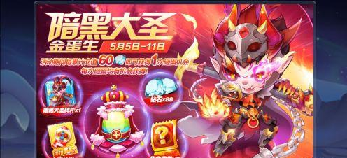 此外,5月5日00:00~5月11日23:59活动期间,游戏内单日累计充值满60钻石即可获得1次砸蛋机会,每次砸蛋均有机会获得暗黑大圣、暗黑大圣碎片或其他超值奖励,不限次,当日砸蛋的充值额度不累计!玩家当日充值30钻,次日再充值30钻,次日是无法获得砸蛋机会的哦。更有1钻春日浪漫礼包、1钻电玩萝莉体验包&1钻炼狱暴龙体验包同期限时上架!
