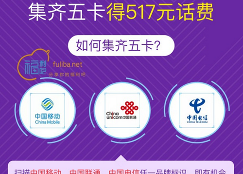 类似之前集5福的活动,即日起至5月17日,用户可扫描中国移动、联通、电信的品牌LOGO,即可进入活动,获取卡片。