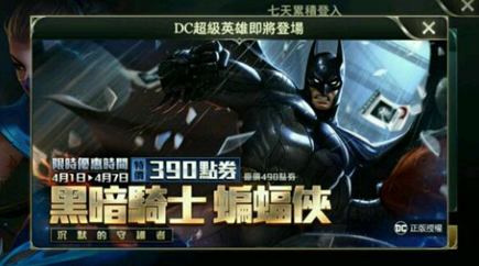 从上图可以看到,蝙蝠侠售价490点券,折扣之后390点券