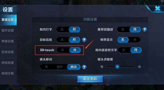 如果需要使用3D-touch取消技能,请一定在基础设置中打开3D-touch功能。