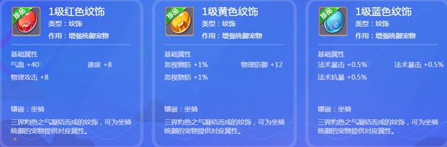 以上就是梦幻西游手游坐骑纹饰属性哪个好,1-3级坐骑纹饰属性图鉴汇总一览,请大家继续关注。