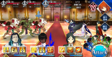 第一波几个小怪就是让你攒NP用的,如果是阿周那+特斯拉,主要让阿周那攒NP到75左右,由于礼装自带30NP。孔明群体BUFF加攻20NP(孔明的BUFF别在第一波开,留在第二波开),所以只需要自己攒25即可。还是十分简单就可以达到的。