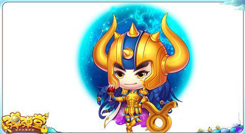 金牛座套装(女):女款金牛座套装与男款在造型上并没有太大差别,都是金色的头盔和铠甲,手里也同样拿着代表金牛座的印记。唯一的不同是,相对于男款套装表情的威猛,女款金牛座套装的表情更为Q萌。