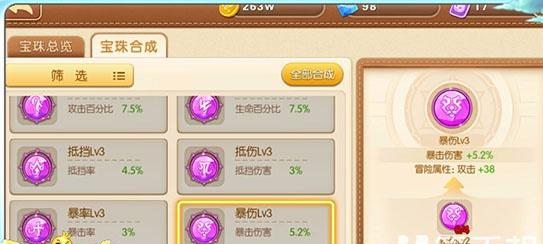 宝珠合成:在宝珠合成界面中,若干个相同等级与属性的宝珠在一起可以合成高级宝珠。随着游戏进程的推进,玩家手里的低等级宝珠越来越多,这种方式也就成了我们获取高等级宝珠最省钱的方式之一。
