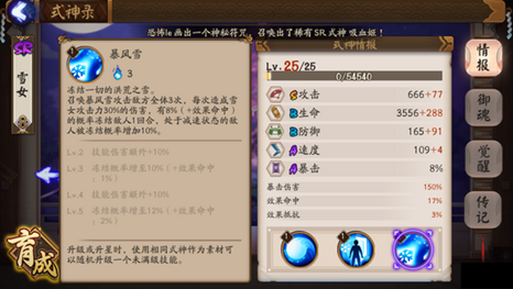 设计师观点:由于雪女在竞技中会给对方不佳的体验,这一点和我们设计回合制游戏你来我往的思路是有所冲突的,我们慎重地决定对[暴风雪]技能进行重新制作。重新制作的雪女将会表现为一个平衡的群控。
