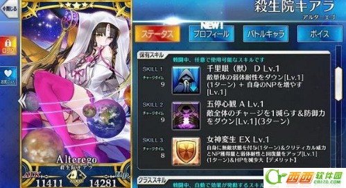 千里眼(兽) D:敌单体弱体耐性DOWN(1回合)+自身NP增加(1级30,猜测10级50)