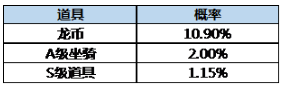 开启潘多拉之心,获得龙币的概率为10.9%;获得A级坐骑的概率2%;获得S级道具概率为1.15%。