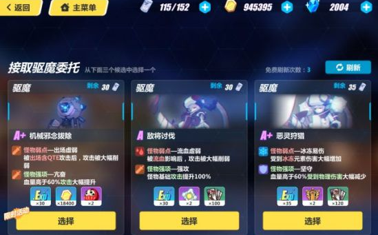 崩坏3每位舰长可以开启一次驱魔委托任务,玩家的驱魔等级越高,可以接到的每日驱魔的稀有度越高,难度越高,奖励越好,每日驱魔任务时间有限,因此需要有选择性的做驱魔任务,那么崩坏3每日驱魔任务做哪个好,下面带来每日驱魔委托选择攻略。