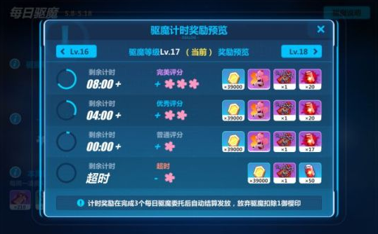 崩坏3每日驱魔委托有A级,A+级,S级,S+级,每日驱魔任务等级越高,虽然难度越高,但是获取的奖励也是成正比的,不同等级的每日驱魔委托任务奖励有金币,碎片和材料等等,下面带来崩坏3每日驱魔任务大全,各等级每日驱魔委托任务奖励汇总。