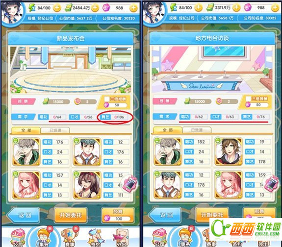 比赛相对比较简单,属性只要比对手略高就行,不要把太强的艺人推上去,造成资源浪费。