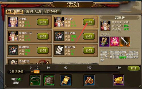 少侠可以点击界面右上角的活动按钮,打开活动的日常活动界面进行参与。