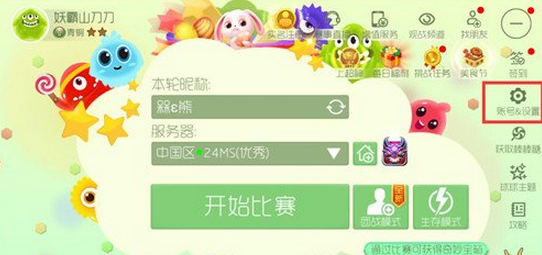 第一步:打开游戏,来到球球大作战主界面,点开“账号&设置”,进入游戏设置界面;