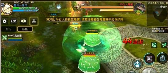 半石人毒菌能够施放毒震技能对我们造成全屏伤害,要想躲避掉这个技能,就需要我们从这些毒蘑菇中成功激活保护阵,并进入到绿色的保护罩范围内即可。然而对于躲避这样一个技能来说,某种成分上需要一点运气,因为需要我们10秒内在如此之多的毒蘑菇中找到藏匿的保护阵绝非一件易事,不过上回版本修改之后,真假分辨更为容易,只要在全屏毒来临之前打掉绿色的即可。