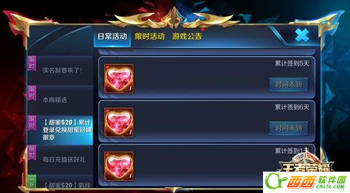 活动期间,每日登录均可获得甜蜜爱心,大版本更新后可用爱心兑换全新道具-回城徽章(限时),获得特殊的回城效果!本次甜蜜520兑换道具甜蜜爱心仅能兑换限时回城徽章,共需六个。因为活动时间仅有6天,每天只能获得一个,所以需要大家连续登录。