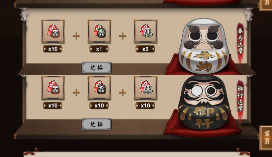 活动介绍:活动期间,玩家通关各种副本有概率获得3种不同的达摩卡,筹齐对应数量的达摩卡便可到游戏里的活动页面(在地图左边的灯笼进入)兑换达摩。