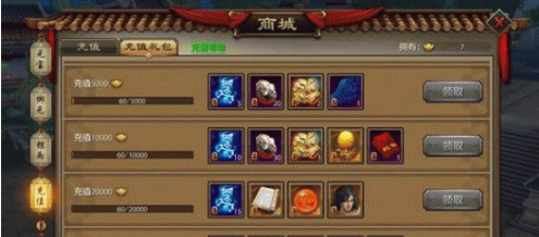 参加活动:游戏成长礼包,88元6888元宝,月卡30元一月3600元宝,周卡12*4是2800元宝,每天副本清完送50元宝*3天1500元宝。