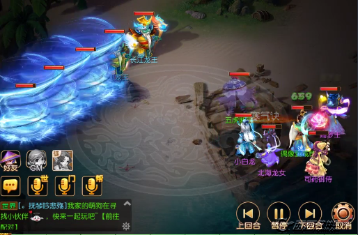 对方阵容:五条龙;技能:龙吟/清心 龙游浅水 龙卷雨击/龙神之威 二龙戏珠 龙卷雨击