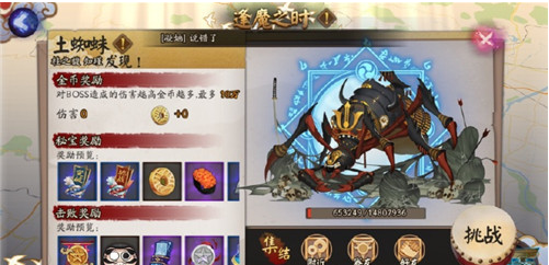 此番登场的BOSS土蜘蛛,长期蛰伏于阴阳相交混沌之界,吸取了强大的力量,但也身藏大量珍宝。众多阴阳师需要相互协助才能将其击败,击杀后可通过邮件领取丰厚奖励