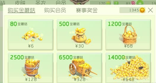 6元:80个金蘑菇