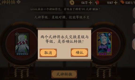 3、式神等级、星级对调,技能等级不变。(被调整的式神不影响,不相关)