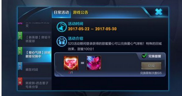 点开活动,再点击爱心气球回城勋章兑换活动即可兑换。