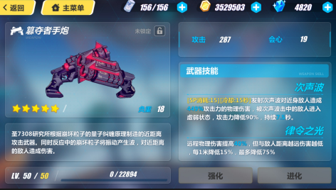 看起来是上个版本手炮的高阶版本,用好的话能够给月光提升非常高的输出,不过因为有负面效果。所以仍旧是低配装备。主动技能的次声波释放方法类似月神枪。而且不会对敌人造成什么硬直,伤害可观,可以用岳父套来加强,说不定会有什么黑科技。