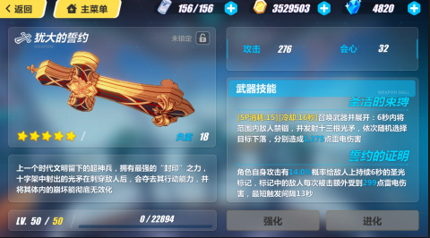 誓约的证明:角色自身攻击有14.0%概率给敌人上持续6秒的圣光标记,标记中的敌人每次被击额外受到299点雷电伤害,最短触发间隔13秒