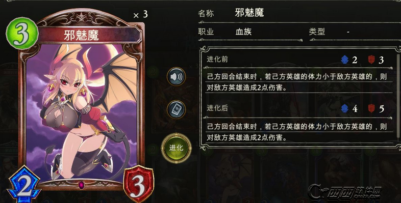 魅魔323,身材普通。她的特效决定她是一张比较吃combo的卡。而蛛魔214跟魅魔323这两张卡是存在combo的。2费的时候上蛛魔对自己造成2点伤害。自己18血对面20血。3费的时候上魅魔,蛛魔踢脸对面-1血。魅魔结算前对面19血自己18血,对面的血量比我们高。这个时候就可以触发魅魔的特效打对面两滴血。魅魔结算后对面17血我们18血。