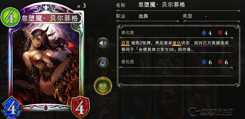 444怠堕魔。当前版本吸血鬼卡组的绝对核心。身材很棒,唯一比较烦的就是水巫女。水巫女进化后6/7刚好可以解掉进化的怠堕魔自己还能活下来。咳咳这个是题外话了。我们继续来说这张卡。当前版本T1级别的小仓唯斩杀爆发多在T7魔将军回合,龙的斩杀也多半要T7以后。因此4费下怠惰到10血是很安全的(也要考虑场面,如果前期场面没控制住下10血后对面场上的卡足以把你斩杀那就最好三思而后行,看有没有下怠惰以外的其他出牌思路)。