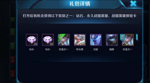 王者荣耀2017端午节黄金粽子直接打开有几率可以获得以下奖励: