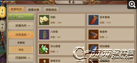 采集物,现在只有紫色品质的才可以在交易商会进行出售和购买。