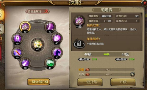技能解析:可瞬间向前移动10米,逍遥派的另一招牌技能。该技能升级之后可降低冷却时间,如果你是手速党,时刻想把对方玩弄于鼓掌之中,那么它毫无疑问是重点升级对象。