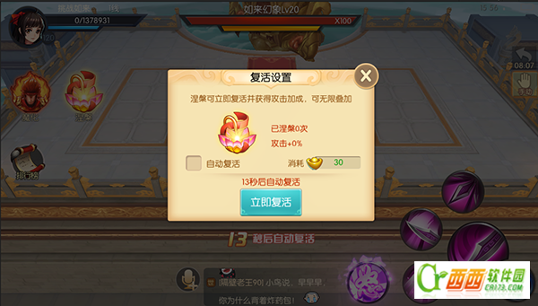 角色死亡后玩家可以选择等待自动复活或者涅槃,涅槃可为玩家增加属性,可无限次叠加。
