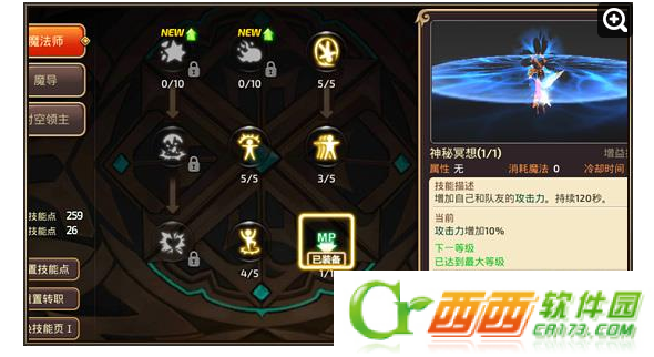 神秘冥想:一个辅助型技能,增幅全队的攻击力,增幅量为10%且持续时间能达到120秒而CD只有60秒,一个无缝连接增益型状态技能,在队伍中如果有一名时空领主就等于全体队员都能增加攻击力,对于物理系英雄的增益是不言而喻的,作为团队的爆发输出同时兼备攻击力增幅,从而造就了时空领主在PVE中的必备性,是一个优秀的辅助技能。