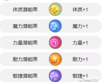 每个潜能果增加1点人物属性点,共有五种属性的潜能果,分别对应为体质、魔力、力量、耐力、敏捷。