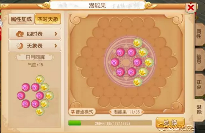 利用自身拥有的潜能果,来组合出,可以获得自然力量,额外获得属性加成。