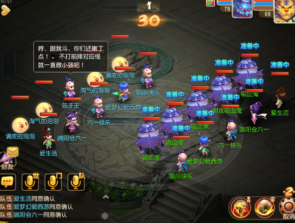 六一时节,孩子王向各路大朋友小朋友们发出约战!各位少侠可以组队前往挑战,与孩子王一较高下!注意化身孩子形态时是无法使用任何技能的哦! 图片描述