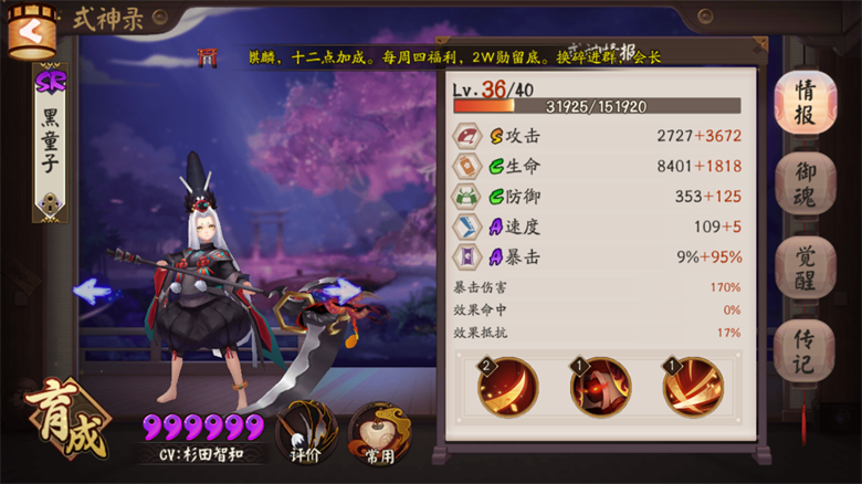 御魂属性位置:2号位和4号位:攻击加成,6号位暴击伤害。
