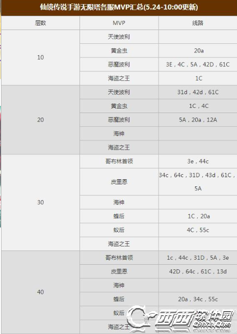 仙境传说RO手游5月24日更新无限塔MVP表格一览!今天西西为大家整理了5月24日更新无限塔MVP汇总!希望能帮助到大家!