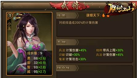 剧情任务都是环环相扣的,需要完成前置任务才能开启下一个任务,但只要各位主公多花时间就能将小玉抱回家哦。小玉是一名计策型武将,技能是对前排造成200%的计策伤害,智力成长也不错。最重要的是小玉妹子这么可爱,你舍得不去完成剧情任务吗?